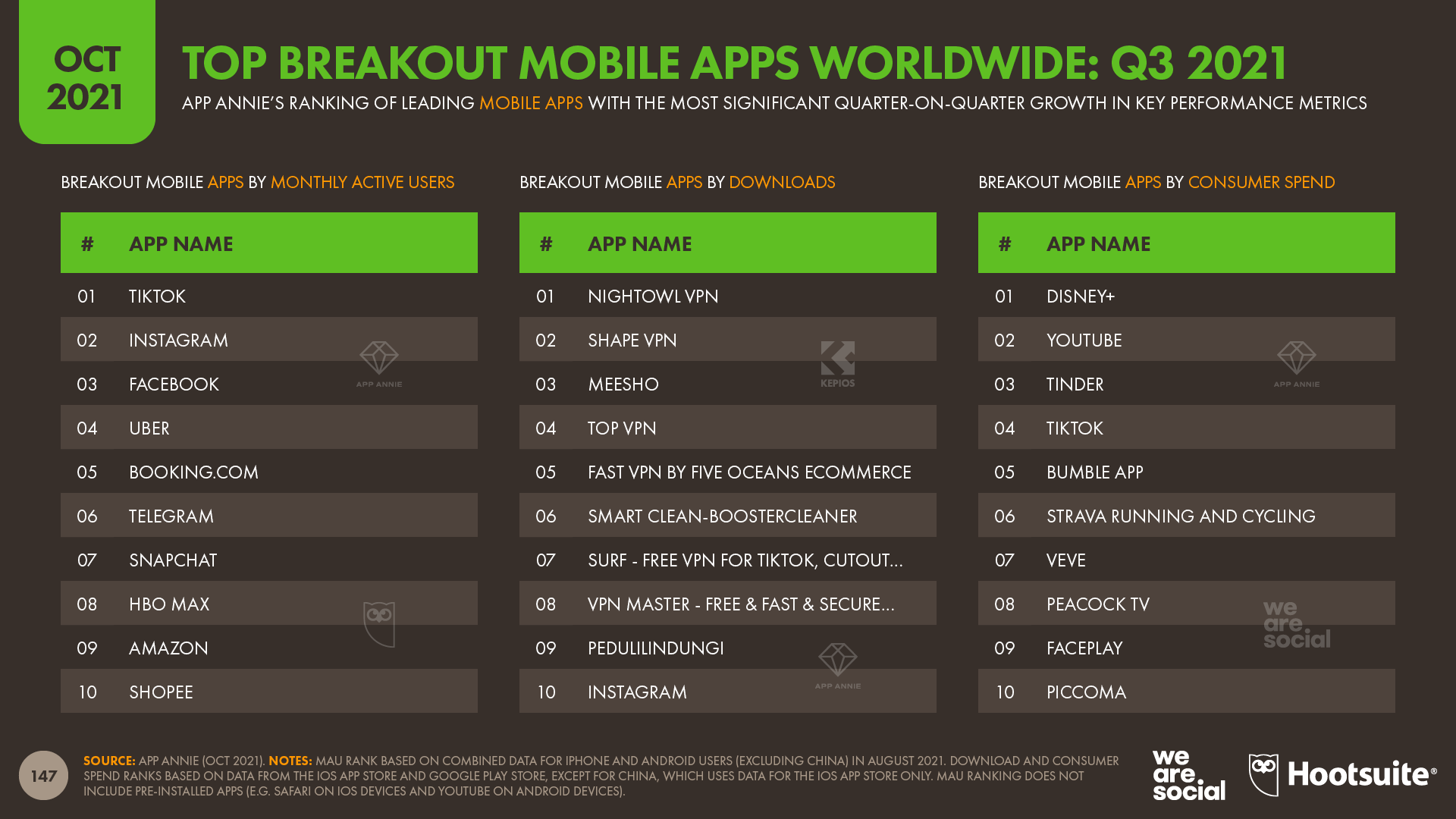 شایان ذکر است. به نظر می رسد هزینه کلی تبلیغات رسانه های اجتماعی در سه ماهه سوم سال 2021 نسبت به سه ماهه مشابه سال گذشته کاهش یافته است ، به طوری که داده های Skai نشان می دهد تقریباً 6 درصد در سال هزینه های تبلیغات در رسانه های اجتماعی کاهش یافته است. [19659002] صرف جستجو تبلیغات همچنان افزایش یافته است ، با این حال آخرین دادهها نشاندهنده افزایش 32 درصدی کل هزینههای جهانی برای تبلیغات جستجو نسبت به سال قبل است. ) داستان «سرگرمی» در دانلودهای جهانی برنامه در سه ماهه سوم بودند، که 6 برنامه از 10 برنامه برتر غیربازی را با بیشترین افزایش بارگیری در سراسر جهان بین جولای و سپتامبر 2021 تشکیل می دادند.